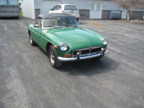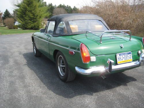 Relisted due to non-paying bidder. 1974 MGB British racing green 4cyl 4sp. car has 67,000 miles. Excellent body paint and upholstery. Weber carb, new top, am-fm cass.radio with power antenna. All gauges, directional signals and lights working. Car has current inspection sticker and is register in Pa. Last year for the chrome bumper cars. Great car to take to the shows and weekend cruises. Runs and drives well. Ready for summer fun. Feel free to ask any questions. Thanks