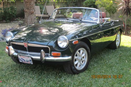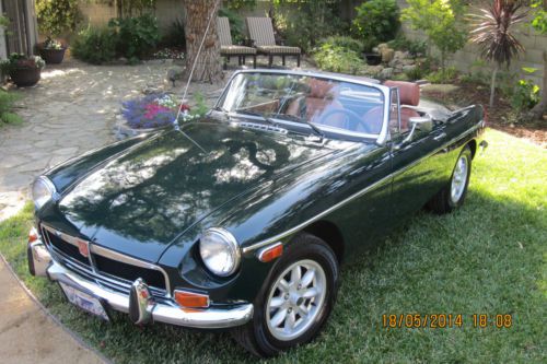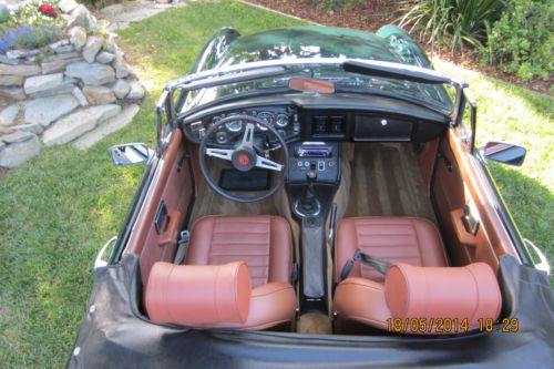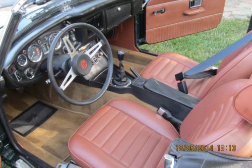 Totally restored 1973 MGB lovingly owned by same owner for 39 years. First total restore in 1990-91. Second restore 2013. Complete frame tear-down paint job in British Racing Green, including 5 coats of primer with wet sanding between each coat. Totally refurbished interior with new carpeting, Leather seats in Autumn Leaf ( not MG vinyl ) custom dashboard and custom kick panels with new slim-line speakers, including speakers in the rear panel. Sound deadening insulation throughout interior. Kenwood stereo with USB, CD, Bluetooth and phone connection and remote. This system is so good you can listen to NPR with the top down. Car comes with top, tonneau cover, rear top cover, the original MG wheels and a load of extras. Mechanically, the car has a rebuilt engine with 520 miles, new clutch, new brakes, new Rack and Pinion steering, new shocks, new custom-built leaf springs with extra bars for added stability. Electrical has been checked and updated with LED brake and turn signals lights. A tight 4 speed transmission with electric overdrive. This car is as fast and tight as the day it came off the line. |
