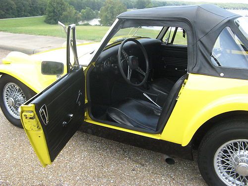 An older restoration, the car features Ferrari Fly Yellow over black paint.  The windshield was removed for painting and a new gasket installed.  The interior was redone with all new carpet, door panels, window cranks and a new dash.  The top frame was sanded and repainted and a new convertible top installed.