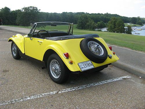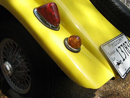 A real head turner.  Everything about this car is standard MG Midget except a fiberglass conversion kit from Arkley England has been added to the front and back giving the car a "Morgan-like" look with flowing front fenders and a recessed spare in back.