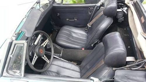 1972 MG Midget with around 45K miles. Engine runs good and interior is good (handles to roll up window are broken). Body is in overall good condition, but needs minor body work and paint. There is some surface rust to deal with, but undercarriage looks good as well as floor pans. The suspension needs some attention as the car sways at around 55+ mph, but handles fine when tooling around. We had been driving the car recently when the clutch gave out. There was fluid leaking so I don't think it's the clutch assembly. Brakes are good, but lights are also out. Tires are good as well. These are all the known issues and the car can be easily brought back to good driving condition and could be perfect with a good paint job.