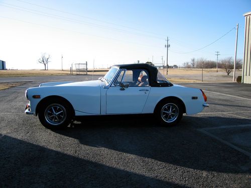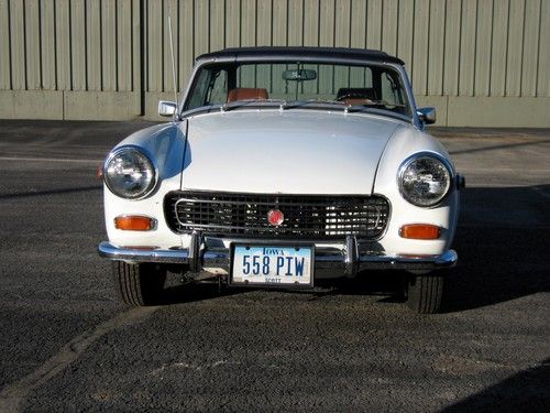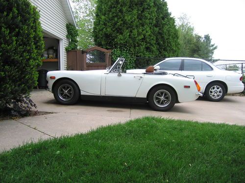 1974 MG Midget, White/Autumn. last year for the Chrome bumper car with 67000 original miles, original motor. New wheels and tires, top, bumpers, seats, carpeting (interior and trunk), rocker panels (not installed). Comes with original spare, top boot and tonneau cover. This car is a lot of fun to drive!