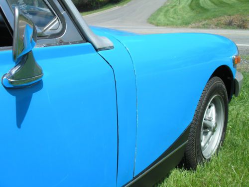 Here is a 1979 MG Midget 1500. We've checked it out, it runs and drives well. Not a restoration, just a solid car. Body is solid, interior is complete, everything works. Car is original color (Pageant Blue), with a few small dings and touch-ups There is a crease in front of each door where the door opened into the body. We have put new check straps on both doors to prevent this from happening again. Car has a Monza exhaust, and AM-FM-cassette. Has a new convertible top and new tires. Good low-priced driver-quality sports car. Ready for top-down summer motoring. The mileage shown (28,691) is what is on the odometer. We make no claim that it is original or correct. Very possibly the speedo has been changed at some point. Please note that buyer is responsible for arranging pickup or shipping of vehicle--we do not arrange shipping. We will make every effort to meet and accommodate your shipper. Car is for sale locally, we reserve the right to end auction at any time. Webb Motors has been a British car dealer since the 1950's, still here in the same location. 7106 Williamson Rd., Roanoke, VA 24019. Phone number 540-362-3923 Mon-Fri 9 to 5. On May-09-14 at 06:46:17 PDT, seller added the following information: We added pictures of the trunk and underside as requested. As you can see, there are no rust issues. |