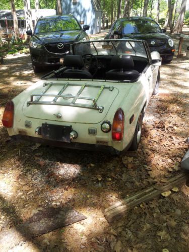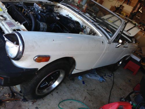 I'm selling my 1979 Mg Midget. I bought it about 7 months ago with every intention of replacing the brakes and driving it and now I have too many other obligations to get around to it. It starts and runs but needs the brakes done. I have new brake lines (all 3), a new master cylinder, and a caliper rebuild kit(none of which have been installed but will be included in the auction). It needs the front rotors turned or replaced but the pads have barely any use on them and the rear drum brakes look good. The previous owner replaced the original carburetor with a new weber and new ignition coil. He said he rebuilt the transmission as well. I did buy a new shifter skirt too. One of the tyres leakes air and the full size spare needs new tire on it. The tyres are old and need to be replaced they are 175/70-13 and are pretty cheap. There are a few typical rust spots but was garage kept before I got it and has been under 2 tarps since I've had it. This car needs very little to be driveable. It is an old car and a small project.