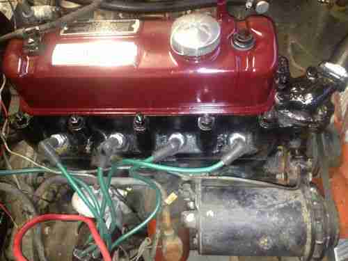 ENGINE: It has an engine swap from an MGA 1600, this was done many years ago (sorry, I don't have the original 1500 XPEG engine), the engine runs with good oil pressure and idles, of course it will need some tuning and it does have an oil leak coming from the rear main seal. (I have heard that this is a common issue on this engines and is relatively easy to fix. check the mgaguru web page). Carburetors have been cleaned and a new aluminum radiator has been fitted. video of the engine running is available. Gas tank is out of the car, I have cleaned most of the existing gunk but it needs to get some leaks fixed and sealed. I do have a small plastic gas tank which I use for starting the engine.