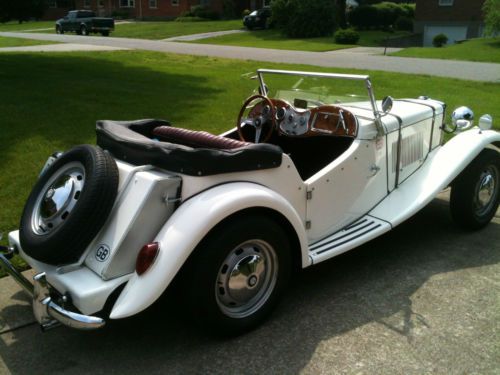 This 52 MGTD replica, built from Classic Roadsters Inc of Fargo ND kit on a 73 VW chassis with 1600cc dual port engine, is the most authentic MGTD clone you will ever see. It has fooled many owners of actual MGTDs. The Classic Roadster uses actual MG OEM parts from Moss Motors e.g. Radiator grill, bumpers, lights mirrors etc. (see photos). The engine, transmission, suspension etc. all have been rebuilt or replaced. The top and side curtains are like new as is the upholstery.There is a small crack in the fiberglass on the drivers side running board.(see photo). Car starts first time,shifts smooth stop[s great and is a lot of fun to drive! If you don't want to attract attention, then this isn't for you! The reserve is low! Sold "as is"> Pay Pal and cash accepted only! Buyer is responsible for pickup or delivery. Questions: Call Joe at (502) 338-5793. Thank you!