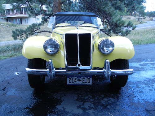 Brief history: The orignal owner attended Purdue University. An englishman who owned a body shop in a small town in Indiana acquired the TF after the student had an accient involving the front-end. The car was unused until I discovered it at the englishman's body shop. He sold it to me when I promished I would not make a hot-rod out of it. I moved it Colorado in 1974. It has been garaged continuously. In 1975-1976, I did a frame-up restoration that included having the entire frame and suspension sand-blasted and painted with black epoxy. I over-hauled the engine and installed a new clutch. The transmission, drive-shaft, and differentrial were in excellent conditon and were not over-hauled. The 4 hydraulic shocks were replaced. The fenders, fuel-tank and running boards were removed and stripped to bare-metal. I hand stripped the body to bare metal. All chrome including all screws was re-chromed in 1976: condition excellent.