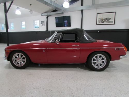 1972 MGB Roadster, Red exterior, Black interior, very rare Ivor Searle re-manufactured engine from the United Kingdom. Engine was built in 2003 as a Power Plus 1950cc Stage 2 which includes a re-profiled fast road camshaft, new duplex timing chain, new adjustable vernier timing gear, new clutch kit, new inlet and exhaust valves, new spark plugs, reconditioned and lightened flywheel fitted with new racing gear, cylinder head ported and polished to stage 2 specification, valves modified, crankshaft nitride hardened, electronic balancing of crankshaft, flywheel and clutch assembly, conrods balanced “end to end” and pistons balanced. GPC Cars go through a rigorous 150 point inspection. We strongly advice inspection of any vehicle before purchase. We have attempted to describe this vehicle in the best way we can. NO WARRANTIES OFFERED OR IMPLIED. |