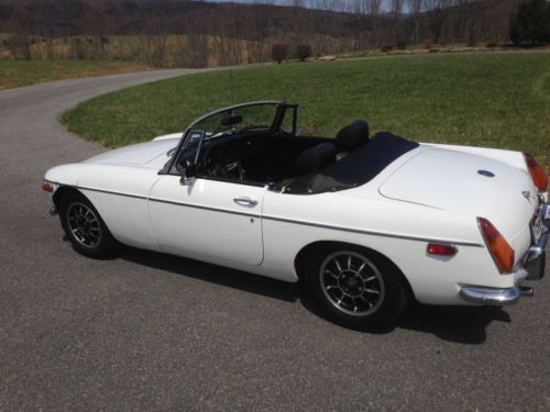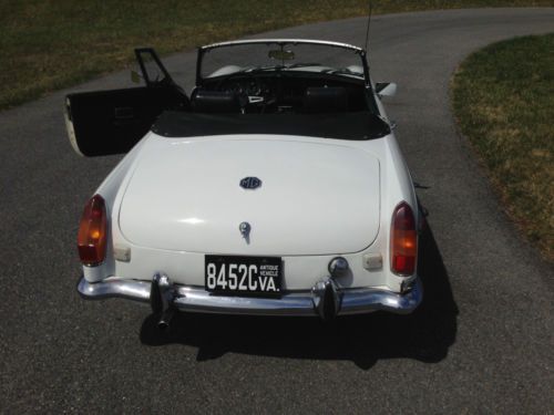 A sudden move is forcing me to sell my MG B. This car does need a little work to be 100% but it looks, starts, runs, and drives excellent the way it currently sits. I would have no reserves with walking outside jumping in it and driving anywhere in it at this very moment. I bought the car about a year ago from a fellow that bought it in the early mid 90's. It was apparently restored just before he bought it. The drivers side front fender needs to be replaced. I have the replacement fender for it already, almost all the body work has been done to it and it is almost ready to be installed and painted. There is also a small dent in the right rear quarter panel under the tail light that needs to be pulled and painted. Other than these two issues this is an excellent looking car. There are some small imperfections in the rockers and the top of the right fender. Paint looks great from far but, up close it does have some minor flaws, dings and scratches. Mechanically there are no known problems with the car other than once in about every fifty starts the starter free wheels, the next time it will start. This has been a very fun, reliable car for me. The bumpers are ok, but all the other crome is in great condition. The car has always been stored indoors with the top down and a car cover, so the top is in completely brand new condition. Overall the interior is in great condition. There is one small rip in the bottom of the passenger seat. The gauges all look new, as does the carpet and door panels. Everything seems to work as designed. The trunk area was just refinished and I just had all 5 wheels refinished as well. This car has some rare aftermarket wheels on it. I spent some time trying to identify the make of the wheels as ive never seen them on another MG before. When the tires where off of them the only markings was a made in the USA stamp and a SFI certification sticker. This leads me to believe they are a original set of American Racing Vectors! Which are the same wheels that were used on the General Lee in the Duke of Hazard! I have the paper work from the previous owner. It will come with the jack, and a couple boxes of random parts.