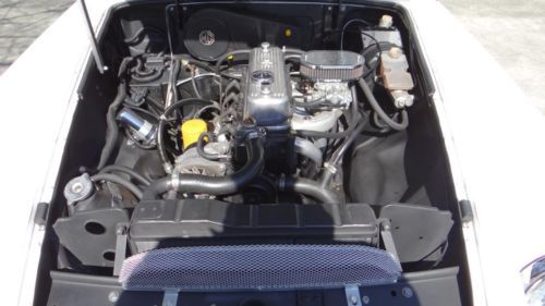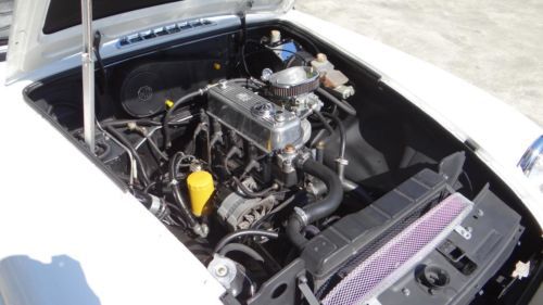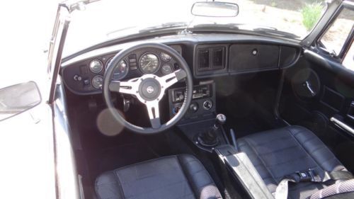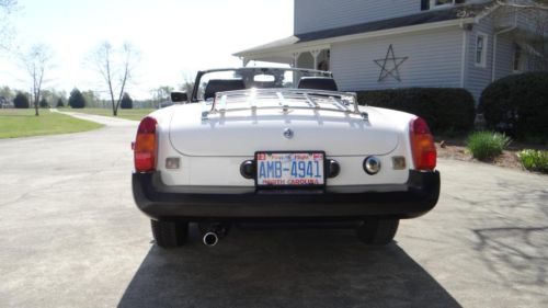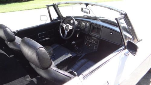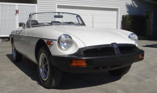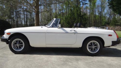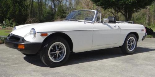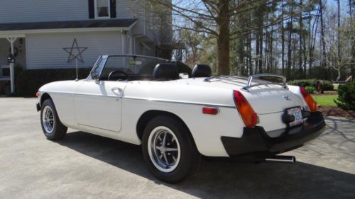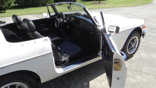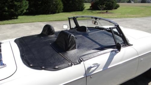 1977 MGB Roadster. White with Black Interior. Overdrive. One owner with only 45,600 original miles. All original paperwork including window sticker and bill of sale included. Car was originally purchased at Koster Swope Imports in Louisville, KY and moved with me to Greenville, NC in 1987. Never any rust or body work. This car has only been used for local car shows for the past 20 years. Garage kept since new and one of the nicest ones you will find. Immaculate condition throughout as can be seen by the pictures. Weber Downdraft Carb, Peco Ceramic-Coated Header, Alloy Rocker Cover, K & N Filter, Polished Aluminum Steering Wheel, Dual Valve Springs, Street Cam, Trunk Carpeting, Eurospec Points Distributor curved for 100Hp, Fuel Pressure Regulator. All original parts except carb and smog equipment are included. Original soft top is currently not on car but is included. Full tonneau cover is currently used for interior protection and is included. Soft top frame is in excellent condition. Soft top is fully functional with no rips or tears but is 37 years old and rear window is badly yellowed and some of the stitching has deteriorated. Heater is currently not hooked up. All parts are available to install. Car had one repaint approximately 10 years ago to simply freshen up. Paint is in excellent condition. Rubber bumpers are also in excellent original condition. Interior includes original dash with no cracks, scratches, etc. Seats are original and in excellent condition with no tears, rips, etc. Carpeting is also original with very minor wear. Seat belts have been changed to lap belts only and work great. The original shoulder belts are not included. The Sunvisors have also been removed and are not included. Engine and transmission had new seals and gaskets replaced approximately 8 years ago. At that same time the valves were ground, new dual valve springs, cam, timing chain, new oil pump, and clutch were installed. Unlike most MG’s, it is almost leak free. New gas tank installed a few years back. Gas gage is currently not accurate. Sending unit needs adjustment or a new one. Was never an issue for me. I have tried my best to give all info on this car. You really must see to appreciate. Please serious inquiries only. If interested and have further questions, email me or call Gary @ (252) 758-2816. |