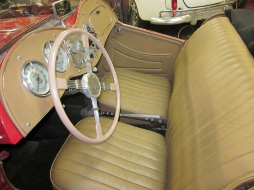 Weather equipment: all new, all Stayfast cloth, side curtains still in bubble wrap…never used. Interior and trim are all new, dash nicely detailed, all original gauges work properly, new Brooklands banjo type steering wheel (in matching color), most of the chrome is new (and what is not is very good), new radial tires, quiet exhaust, new wood floors, zero rust on the chassis and body rails underneath, wipers work, is fitted with a heater, wind wings, wind mirrors, seat belts, new battery, new wiring harness, mostly new electricals……