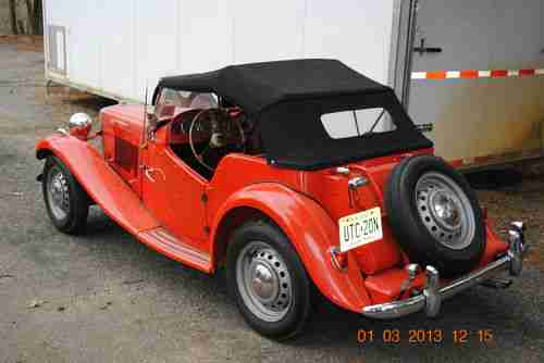 This 1951 MG Td is in good to excellent condition. It has been owned for over 20 years by the same owner. The car engine runs smooth.. The car starts runs and drives!!'the paint holds a brilliant shine. THE 1250 CC ENGINE STARTS ON THE FIRST PULL OF THE STARTER . THE CAR IS SOLID! NO RUST. THE UNDERCARRIGE LOOK SUPER CLEAN! THERE ARE SOME PLAQUES FROM THE CAR SHOW WINS THAT THE CAR WAS ENTERED IN AND WAS PUT THERE BY THE PREVIOUS OWNER i AM REMOVING THEM WITH GREAT CARE NOT TO RUIN THE DASH PAD. I can not tell u when the at was restored but it has been over 20 years . Look at the detail on the pics. THE PICS WERE TAKEN ON A VERY NASTY AND COLD DAY SO THEY WERE MORE OR LESS TAKEN IN THE GARAGE. I WILL UPDATE THE PICS SOON. IF YOU HVE ANY QUESTIONS CALL ME AT 732 948 5553 THE CAR HAS A CLEAR NJ TITLE AND IS READY FOR THE SPRING!