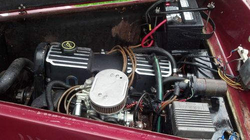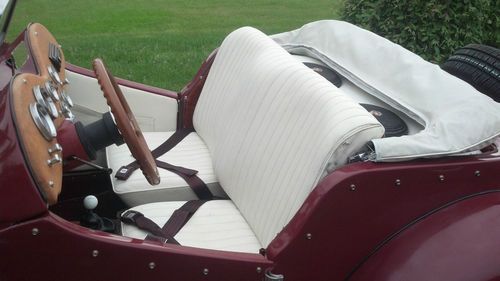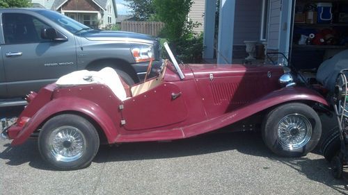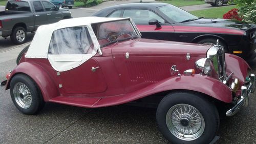This car is a 1953 MG TD Replicia. That was built in 1990. It has a 2.3 Ford 4 cyclinder engine out of a 1977 Mercury Bobcat with matching 4-speed manual transmission. This car was my uncle's before giving it to me. This was a project for my dad and I to do. We have many hours into wet sanding and buffing the fiberglass body out as you can see in the before and after pictures. It has a new battery, new carb, new tires, new air shocks in rear and new brakes installed. Has a cover built so you will not have to put the top up if it rains. The cover will be like what you would find on your boat. It fastens to the wind shield and slopes back to the body. This car drives great. I have taken it out a few times so far. Everything works on the car and the heater will melt you out even with the top down. This is a fun car to drive and gets a lot of looks.