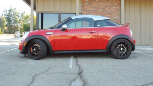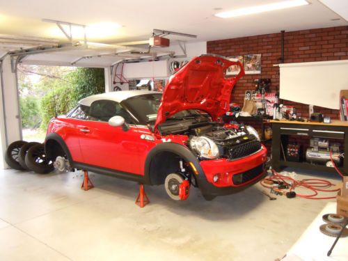 2012 Mini Cooper S Sports Coupe - Upgrades beyond John Cooper Works This Turbo S model has been been modified beyond the optional factory John Copper Works package with higher quality, better performing aftermarket products. This car will our accelerate, out corner, out stop a JCW optioned Mini S with no loss of reliability and should not affect any warranties. Always garaged, like new condition, no scratches. 5,500 miles. Modifications include: • Brembo 4-Piston Race Front Brake Kit w/ Floating 2-Piece Rotors - Less unsprung weight, much better stopping with no fade on the track. • H&R Progressive Coil-Over Springs on the Optional Mini HD Sport Suspension - Lowers the car approx 1-inch for flatter, more controlled handling, less lean angle, while actually providing a much nicer progressive street ride than the stock Mini HD Springs. Plus the lowering makes the wheels fill the fenders much nicer and looks great. • NM Engineering Engine Modifications including: NM Stainless Steel CAT Back Performance Exhaust System, NM Larger Turbo Discharge & Charge Pipes, NM Induction Kit. Measured at the Drive Wheels (add 21hp to match factory measured crank hp ratings), Power is increased from stock 160.4hp / 168.8ft/lb torque to 195.3hp / 199.4ft/lb torque. - 35 horsepower! • Team Dynamics 8x17 Race Wheels - 1-in wider and 8 pounds lighter than stock 7x17 wheels • Champro UHP1 225/45 17ZR Performance Tires, replacing stock run-flat 205/45 x17 tires. Wider, lighter, better cornering and stopping grip, smoother ride. Tires are brand new - 50 miles. Includes • 6-Speed Manual • ABS, Active Handling & Traction Control • Air Conditioning • Bluetooth W/ USB/IPod Adapter • Exhisting 4 year / 50,000 miles warranty • CD audio system with AM/FM HD radio, Bluetooth and USB/iPod interface, 6 speakers, auxiliary input-ready, SiriusXM Satellite Radio • Aerodynamic roof and rear spoiler that raises at 50 MPH • Boot to Bonnet No Cost Maintenance for up to 3 years or 36,000 miles 12/12/13 - REDUCED TO SELL Price reduced from $29,995 to $27,995 to Sell! This is an incredible value on a like new Mini S Sport Coupe with better than John Coper Works performance and handling parts. Don't miss this chance to own the best Around-Town 28 MPG Commuter and Weekend Canyon Carver. |