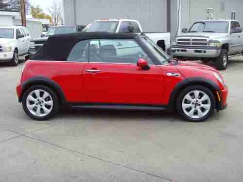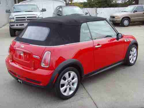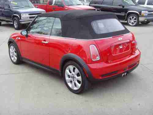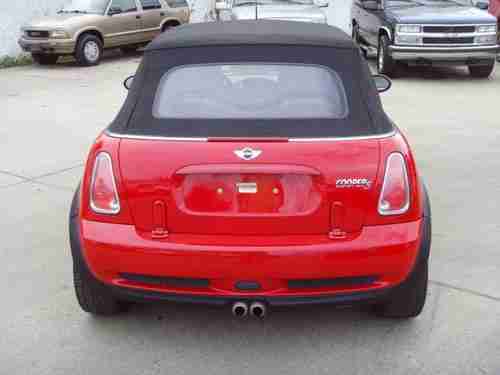 THIS COOPER S CONVERTABLE IS AVAILABLE WITH NO RESERVE TO THE HIGHEST BIDDER. THE CAR IS IN PERFECT CONDITION AND RUNS AND DRIVES PERFECT. THE PAINT HAS A PERFECT SHINE,THE INTERIOR IS FLAWLESS AS WELL AS BEING A NON-SMOKER CAR. THERE ARE NO MECHANICAL DEFECTS WHATSOEVER AND THE CAR RUNS PERFECT AS EXPECTED. AUTO CHECK SHOWS ONE INCIDENT THAT WAS A MINOR PARKING LOT IMPACT THAT ONLY REQUIRED A NEW REAR BUMPER COVER. FEEL CONFIDENT IN BIDDING ON THIS BEAUTIFUL AND RARE COOPER AND THAT THE WINNER OF THIS AUCTION WILL BE MORE THAN PLEASED WITH THEIR PURCHASE. QUESTIONS OR FURTHER INFO PLEASE CALL 270-724-4394
