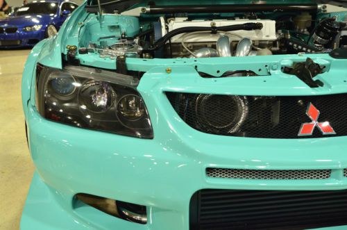 1000HP Mitsubishi Evolution One of a Kind! Here is your chance to own a worldwide well known 1000hp Evo. Over 80k invested in this build. The car was painted by Count’s Kustoms ( from the TV show Counting Cars) in Teal(Tiffany Blue) a 3-stage pearl paint $7000+ paint job. The car was built by various shops who have paid attention to every single little details that goes in building a true show car with power. This car has been on several cover magazines including some in Europe. This car is ready to go with no cooling problems! Clean title no accidents. This is not recommended for Novice drivers. Car must be seen in person to appreciate. 2003 Mitsubishi Evolution 8 59,6XX miles on the chassis Engine Block: Insane Speed Built 2.3 Litre Engine (fresh engine at 58,800) 4G63 Block 100mm Crankshaft Carrilo Rods Block Notched for Rod Clearance ARP Rod Bolts CP Forged Insane Speed Spec Pistons CP Insane Speed Spec Wrist Pins Plasma Rings ACL Race Bearings ARP Main Bolts AMS Race Balance Shaft Eliminator Head: CNC Ported Head (Brand new at 58,800) Ferrea stainless steel valve springs Ferrea titanium retainers, locaters, and locks Competition Copper Alloy valve seats New Valve Seals Ferrea Custom Bronze valve guides Ferrea 1mm Intake Valves Ferrea Exhaust Valves ARP Aged Head Studs Comp 280 Camshafts AEM Adjustable Cam Gears Engine parts: Wilson V2 Intake Manifold Ported Throttle Body Avid Engine Mounts White Pearl Valve Cover Tapped for -10 Breathers 1/1 Insane Speed Integrated Breather + Power Steering Box (Brand new at 58,800) Insane Speed Billet Timing Tensioner Buschur CDI COP Ignition Fluidampr Harmonic Balancer Gates Racing Timing Belt Braille Small Battery Cusco Carbon Fiber Strut Bar Billet High Flow Fuel Rail Aeromotive Fuel Pressure Regulator FIC 2150cc Injectors Tripple Fuel pump with relays good for 1200HP (Brand new at 58,800) All upgraded fuel lines with fittings Exhaust: Blitz Nur Spec Exhaust System Insane Speed Quick Transition Stainless Down Pipe Turbo + Cooling: Forward Facing T4 Race Headers Precision 45mm Wastegate Precision 6765 Ceramic Ball Bearing Billet Wheel Turbo (Brand new at 58,800) Custom down pipe with brackets and harware ETS 4'' Black Intercooler Tial BOV Samco Radiator Hoses Thick core Mishimoto Race Aluminum Radiator Ralliart Race Thermostat Powerful Flexalite Electric Fan and shroud Custom Aluminum Overflow Catch can 18 Row Oil Cooler Transmission/Drivetrain: Shep Rebuilt Evo 9 Transmission New throwout bearing New clutch fork, pin and return springs New speedometer gear and sensor New Hubs + Sleeves New 3rd/4th Shift Fork New Input + Output Shaft Bearings New Needle Bearings New Oil Seals Heavy Duty Neodyminum Trans Magnet + Drain Plug New Snap Rings + Roll Pins HD 1st Gear Bearing HKS 4.11 Ring and Pinion Shepherd Racing Stage 3 Transfer Case Core is from Evo 9 with LSD Quaife LSD front differential 8mm to 10mm bolt upgrade New seals and o-rings Reshimming Neodymium magnet REM ISF Process New Hardened Steel ring and pinion with bearings Clutch: Exedy Triple Cerametallic Clutch New Throw Out Bearing B&M Short Shifter Suspension: Megan Coilovers Wheels: 18x10 +18 Wedsport Sa-67R wheels (powercoated White) Falken Tires 255/40/18 Brakes: Stoptech Rotors Brembo Calipers (painted teal) Hawk Pads Stoptech Stainless Brake Lines Interior: Carbon Fiber Gauge Cups Suede Dash Pieces Titanium Shift Knob Custom Carbon Fiber Rear Seat Delete Carbon Fiber Shifter Bezel 8 Point Roll Cage (custom painted) Kenwood double din Nav/DVD Suede Wrapped interior Pieces Binary Lowering Seat Brackets Sparco Suede Steering Wheel AEM Wideband TurboSmart E-Boost Boost Controller AEM ECU Exterior: Custom Painted Teal w/Silver Pearl Exterior (Brand new at 58,800) Complete Genuine Voltex Widebody Kit: Voltex Carbon Fiber hood Voltex Street Front Bumper Voltex Street Side Skirts Voltex Cyber fenders Voltex Street rear over fender Voltex Street Front fenders Voltex Rear Carbon Fiber Diffuser Oem Wingless deck lid Rexpeed Carbon Fiber Pillar covers Rexpeed Polarized window Covers Rexpeed Carbon Fiber mirror Covers JDM IX Rear Bumper Dsport Cover Car March 2013 Tunning Magazine Maximum Magazine and more