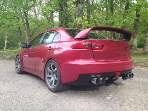 you can find my full build from the beginning at evolutionm.net or txt me ill send you link to it ets 4" Intercooler ETS Intake Exedy Cerametallic Stage 4 Clutch Kit HD ACT ACT XACT Streetlite Flywheel South Side Performance SSP Clutch Master Cylinder Brian Crower Brian Crower Mitsubishi 4B11T Evolution X Camshafts Ultimate Racing Ultimate Racing 3" O2 Housing Downpipe Ultimate Racing Ultimate Racing 3" Test Pipe Ultimate Racing Ultimate Racing 3" Dual Exit Catback Exhaust Boomba Boomba Racing Fuel Rail (Mitusbishi Evo X) fp red turbo dw 1300cc BC Racing BR series Coilover Kit double walboro 255 Wiseco Mitsubishi EVO 10 pistons Manley Manley H Beam Connecting Rods ACL bearings ARP head studs tires 335/35/19 rear 275/40/19 front e85 507whp 476torque that was on the first motor which blew up... second motor: erl block with manley pro rods cp pistons machine shop valve job deck surface supertech 1mm intake valves supertech 1mm exhaust valves supertech dusl valve spring and retainer kit car made 478whp 408tq on 93 pump can be retuned for more power car located in naperville il my cell 6305448874 for any questions asking 45k or best offer also will take trade plus cash or so i have over 70k in it |