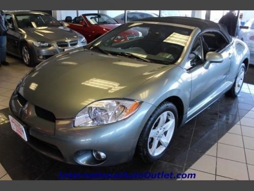 2007 Mitsubishi Eclipse Spyder GS Convertible--IMMACULATE WITH CLEAN HISTORY REPORT--EXTRA CLEAN--LOOKS AND DRIVES LIKE NEW--A MUST SEE TO APPRECIATE--MOST OF OUR VEHICLES ARE HIGH QUALITY, HAND PICKED, ONE OWNER IN A LIKE NEW CONDITION WITH A CLEAN CAR FAX. ALL ARE FULLY INSPECTED, SERVICED AND RECONDITIONED, THOSE THAT DO NOT MEET OUR MECHANICAL CRITERIA ARE NOT OFFERED FOR SALE. MOST OF OUR VEHICLES ARE COVERED WITH THE MANUFACTURER WARRANTY OR A 3 MONTHS/4500 MILE WARRANTY. FINANCING IS AVAILABLE AND TRADES ARE ALWAYS WELCOMED. FOR SIMILAR GREAT DEALS PLEASE VISIT OUR WEBSITE http://www.InternationalAutoOutlet.com At International Auto Outlet, we take pride in maintaining a large selection of fully reconditioned, inspected, certified vehicles. With over 200 quality certified cars, vans, and trucks from local dealer trades, overstocked inventory, off-lease manufacturer auctions, bank repossessions & open auctions, we have the perfect vehicle for you- and your budget. Call, email or visit our website today.