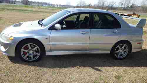 You are bidding on absolutely gorgeous 2003 Mitsubishi Lancer Evolution. This car is Silver with blue/black interior. With only 70k original miles and a clean,clear title, is a RARE find. The engine, from what we can tell is stock with little, to no mods. The transmission is tight and the clutch feels great. No electrical issues, and from what we can tell, ALL electronic options are functional. No lights are illuminated on the dash. This car has a fresh North Carolina safety and emmissions inspection. The paint looks good besides some normal wear on a 10 year old car. I have supplied many pictures for you to see the condition. Its my opinion that this car is in average to above average condition. This car has a clean carfax with no accident history. Although carfax is clean and dosent show accident history, the front bumper and passenger fender have been repainted at some point. The paint job is great and matches. There is a place that has a little damage on the passenger rear door/qrtr area that I took a picture of. Approx cost of repair at my body shop is $600. I can have this repaired for the high bidder and new owner for $600 prior to delivery or pick up. The car does have a turbo timer installed. We have this vehicle advertised locally and we reserve the right to cancel all bids and end the auction early. Please dont bombard me with questions asking how much i'm asking locally. Make an offer through ebay messages. I will not sell outside of ebay. If your offer price is accepted, I will relist with a buy it now and you can buy it through ebay. We have relationships with several transport companies and can assist with any transport needs. We can pick up at any local airports as well , the airport codes to check into are RDU, and PGV. Please dont hesitate to call Joe at 252-327-5004 with any questions. This is a NO RESEREVE Auction and will be sold to the highest bidder.