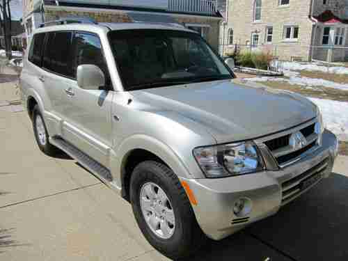 2004 Mitsubishi Montero Limited. 7 passanger 4x4 SUV, 66,000 actual miles. Super clean, power mirrors, locks, windows, antennae, huge tilt and slide glass moonroof with seperate shade, puddle lights in each door, lighted running boards, dual lighted vanity mirrors/sunshades, alarm, cruise control, fog lights, intermittent wipers front and back, sliding center armrest with 2 cubbies lower cubbie has power outlet, 2nd power outlet in back, 10 grab handles, 6 cupholders, compass, dual front airbags and side airbags, leather seating, power & heated front seats, driver seat has power lumbar too. Leather and real wood steering wheel. Dual automatic climate control, Rear seat has seperate HVAC controls, traction control, anti-lock brakes, factory Infinity Sound System has 7-Disc in dash CD changer & AM/FM 6 speaker plus seperate woofer, Hidden flat folding 3rd row jump seat with seperate head rests. 60/40 split second row leather reclining seats. Shoulder belts for all 7 seating positions. Full size spare tire. 4- General Grabber HTS tires with 60,000mile tread life (have only 20Kmiles on tires) listed by Consumer Reports as best SUV tires in 2009-2010. All new brake pads installed summer of 2012. 2 sets of floor mats, newer carpet mats and newer winter rubber mats. Very well maintaned as the pictures show. Mobile 1 synthetic oil changes, no accidents or damage. Great deal. Due to scammers, I will not respond to phone text's. need to talk to a real person. Call 414/881-9369 with any questions. Thanks.