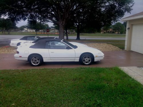 UP FOR SALE IS MY RARE 1994 NISSAN 240 SX CONVERTIBLE. IT IS IN EXCELLENT CONDITION. MUCH TIME AND $$ HAS BEEN INVESTED IN THIS CLASSIC DROP TOP. MUCH WORK HAS BEEN DONE. HAS NEW CONVERTIBE TOP, NEW PAINT, NEW SEATS AND INTERIOR. TOP MOTORS WORK. ALSO NEW TIRES AND ALIGNMENT. NEW HIGH END STERO SYSTEM, AND CURRENTLY INSTALLING NEW RACK AND PINION AND POWER STEERING PUMP. OVER $4000 INVESTED IN THIS WORK RECENTLY. HATE TO SELL, BUT SOMETHING CAME UP AND I NEED THE $$. MY LOSS YOUR GAIN. ALSO NO CRACKS IN DASH. CAR LOOKS AND DRIVES SUPER GOOD. I DON'T THINK YOU WILL BE DISAPPOINTED BY THIS RARE CAR. I SEE A FEW OF THESE OUT THERE, BUT THEY USUALLY NEED A LOT OF WORK. THIS ONE NEEDS VERY LITTLE. SACRIFICE AT $4500 FIRM. CAR IS LOCATED NEAR ORLANDO FLORIDA. IF SERIOUS, CALL 954-297-8422. THANK YOU.
