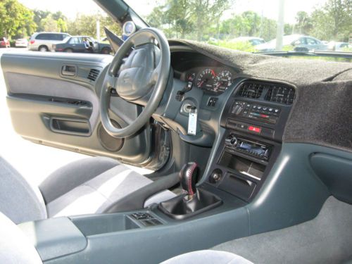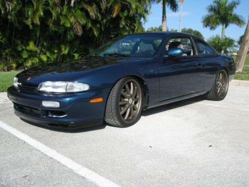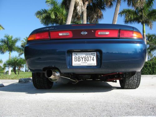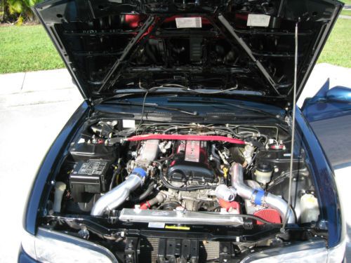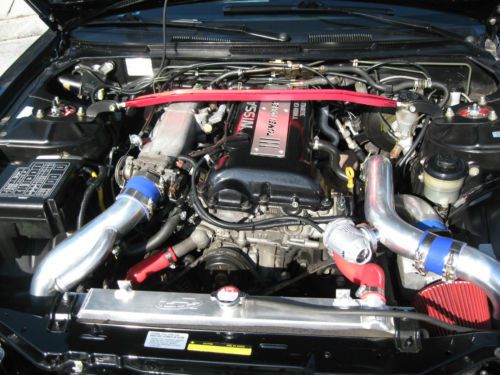- New OEM exterior lighting - SR20DET JDM Kouki Turbo motor - 750cc fuel injectors - Z32 300ZX air flow meter - ROM tuned ECU - JDM stainless cat-back exhaust - Dyno readings at rear wheels is 289.9 Hp and 14lbs of boost - JDM VLSD limited slip differential - Goodspeed type RS Adjustable coilover suspension - Ultra raceing front lower ladder support brace arm - Isis stanless radiator shroud kit. - DNA aluminum frount tower support - Nismo big brake update kit with calipers, rotors and pads - 5 lug front and rear hub conversion kit - Auto to manual conversion kit - New OEM clutch, and break pedal - Complete restoration - Serious byers only please. - FMIC turbo intercooler kit - Gosspeed adjustable front & rear lower control arm kit - Tanabe sustec front under brace - Energy suspension front & rear differential bushing kit - Energy suspension sub frame bushing set - New OEM AME daul guage pod - New AEM Boost and wide band air/fuel gauges - Godspeed rear anti roll bar - New OEM paint - New TSW racing wheels with new Nitto NT555 extreme ZR 235/35ZR19 front, & 265/30ZR19 rear - OEM shifter boot console/bezel - Small crack on dashboard |