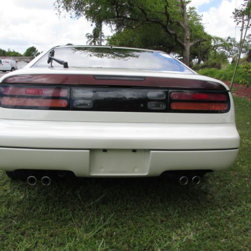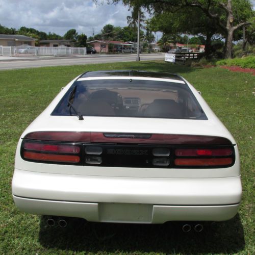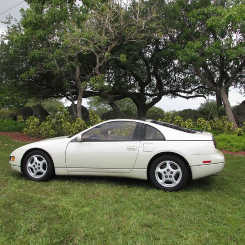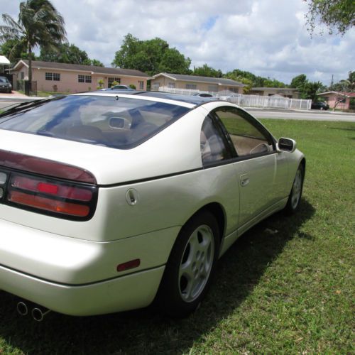Here is your opportunity to purchase a beautiful 2 owner same family owned Nissan 300 Zx coupe . This car has only 80,391 original miles and was always garaged kept and babied. The pearl white paint looks like new and is original. The interior is tan cloth and also looks like new. The seats are in excellent condition as are the carpets, headliner and rear compartment of the car. The dash is pristine and there are no issues with the interior. The car has T tops and they do not leak whatsoever . The come with their covers which I included in the photos. Inside the car you will find all the electronics to work properly. The windows, power seats , cruise all work perfect. The climate control also works great. Ice cold Ac and hot heat. It has a alpine head unit with the factory Bose speakers. Mechanically the car is very sound . The suspension is tight and feels great. The engine starts right up and has great power and the transmission shifts through all 5 gears with no issues. I just completed a service on the car. I bought the car from a woman who got it from her brother . He was a Z fanatic. The car was in her garage and was only started to get fluids through the engine. I just gave it a Tune up, new plugs and wires, The tires are all brand new and the brakes are also in excellent condition. This 300 Zx is beautiful in every way and with the low miles and always garaged and well taken care of makes it one that is collectible. If your looking for a Original car that was never tracked or molested and has original paint and interior then this is the car for you. I am pricing the car at a fair price and Someone will get an amazing 300 Zx. Please read my feedback as I take pride in selling great cars. You can reach me at 954-464-3515 if you have any questions. Steve