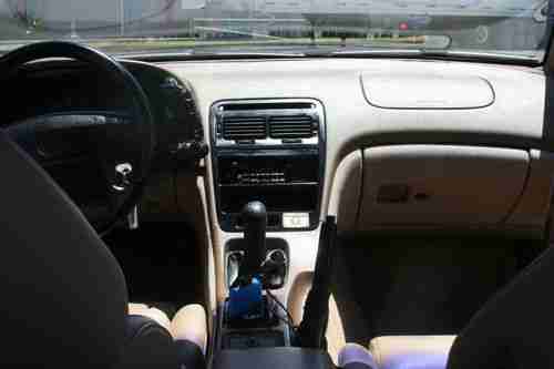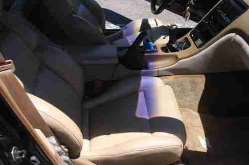 Tan leather and suede interior. A couple of cracks on drivers seat. Passenger seat in perfect condition. Steering wheel in perfect condition. Small crack on center console. Even includes original cassette player. Rear speakers need replaced. Wired for Subs. All other interior parts in near mint condition. Antenna was broken off in car wash so you might want to replace it but radio still works just fine. T-tops come with privacy screens and 1 T-top bag. Cruise control, power windows, power driver's seat, passenger door unlocks and locks when driver's door is unlocked/locked. Air conditioning and heating works. There is little to no rust on the car. None that I can see anywhere.