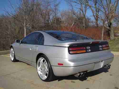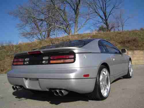 THIS GORGEOUS EXAMPLE TAKES THE 300ZX TWIN TURBO PERFORMANCE AND STYLE TO A HIGHER LEVEL - THE POWER WAS BOOSTED TO 365HP WITH DEALER INSTALLED FREE FLOW INTAKE, PERFORMANCE CHIPS AND SPORT EXHAUST SYSTEM - THE ADDITION OF TOP OF THE LINE LOWENHART LIGHTWEIGHT 17 INCH ALLOY WHEELS ($7,000) WITH THE STUNNING SILVER METALLIC EXTERIOR, CREATED A SPECTACULAR APPEARANCE - THE CAR DRAWS A CROWD OF ADMIRERS AT EVERY STOP - (THE MINT ORIGINAL WHEELS ARE INCLUDED) - THE BLACK LEATHER INTERIOR IS FLAWLESS - THIS VEHICLE HAS EVERY AVAILABLE OPTION, INCLUDING T-BAR ROOF, LEATHER INTERIOR AND EVERY AVAILABLE POWER OPTION -