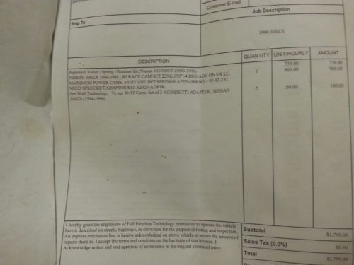 Hi I'm selling my 570 horse power 1990 Nissan 300zx this car has a fully rebuild and modify engine I went from a twin turbo to a big single turbo 6265 billet compressor wheel turbocharged with a core garret gt 24"x12"x4.5 inter-cooler. The car is runing with 2 big fuel pumps the secondary pump sprays at 5000RPM. The engine block counts with wiseco pistons 8.5-9:1 compression 87.5mm bore vg30dett, eagle ESP H-Beam connecting rods. Is grind and polish crankshaft 3 angle valve job , resurface cylinder head, bore and hone. R5 Race cams229@.050"+4 DEG ADV ON EX LC maximum power cams .JWT AZ320 springs.bosch high flow fuel pump AKA the 044 pump 300 LPH of flow. 75mm strip throttle body aluminum satin.aem twinfire 4 channel, K&N intake air filter, custom 950CC high pressure saturated injectors, OS Giken multiplate race clutch (triple plate holds up to 1000hp) this car uses E85 ethanol fuel only. No power steering or ac. If any more questions please take a look at the invoice pics thanks.
