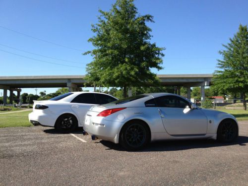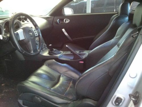 2003 Nissan 350Z Touring 6 speed model with only 75,xxx miles, in chrome silver with black leather interior. The touring models feature the black leather interior, Vehicle Dynamic Control (VDC), and traction control which is tied in with the VDC and can be turned off with a button, as well as a premium 6 disc in dash CD changer with 7 speaker Bose audio system.