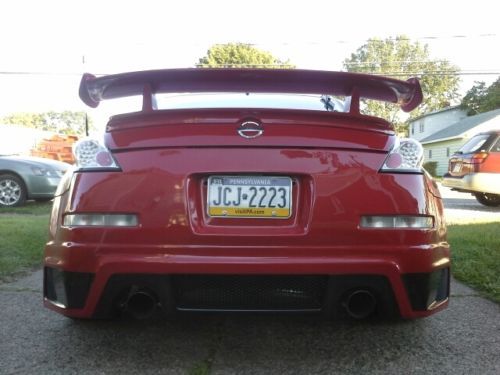 This is an update on my 2005 nissan 350z with 28050miles. I have reduced it to lowest im willing to take and listed it for sale for the last time. This car has been well kepted since the day I bought it with 7000miles on it. Its never seen winter has no rust or major damage. I have put in alot of time and $ into it. It has many performance and appearance upgrades and comes with all original factory parts I have . To name a few its been chiped, cold air intake, magnaflow exhaust from headders on back, wheel wood 6 piston big break kit , Donz Gagiliano staggered 20inch 3 pieace raceing rims of 5000$ value , sway bars and damper kit, professionally installed sun roof witch these cars dont have, optional lambo doors, touch screen cd player with TV and navigation about 15 speakers with 2 stroung amps, alarm system, h.i.d head and tail lights, wing, body kit , fenders and more. This cars drifts, runs and sounds great its a head turner people stop all the time to take pics weather im parked or on the road ,its pretty funny. I won a couple car shows also. The only reason I'm considering on selling is because im thinking of reinvesting and opening a shop. For serious buyers or respectable offers contact me for info at lilo2531@gmail.com or 8145725322. I have reduced thousands off the original prise of 35k I wanted and and put it up for bid at a loss to me. Theres no catch the car is truly what u see and a great deal, the reserve is set low off what I wanted and theres no other one like it with all that I have to offer.