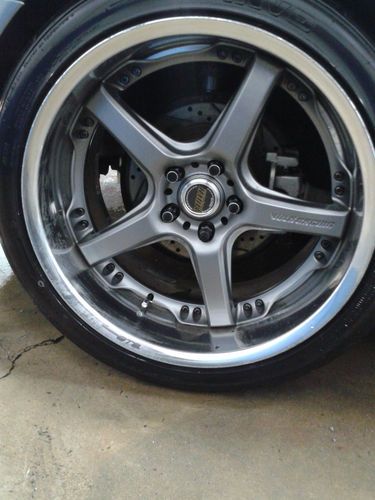 4) Drilled & slotted Rotors front & rear,with performace ceramic pads, Nitto Invo Tires Z rated 235/35/ZR19 <Front>, 275/35/ZR19 <Rear>, 19" VOLK Racing GT-S Wheels,Forged 2pc structure 19x8.5" in the front,,,19x9.5 in the rear.