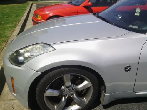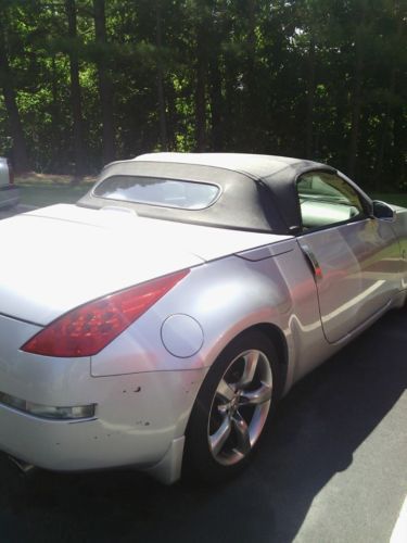 FOR BID: A SUPER FAST 6 CYLINDERS 350Z ROADSTER NISSAN SPORT CONVERTIBLE SILVER CAR!!! The Bad: Top doesen't close all the way - need minor repair Need cosmetic job as you can see in the pictures The Good: It runs great, fast and it got a kick - come over and test drive it for a joy drive.
