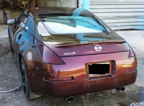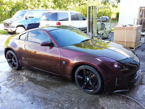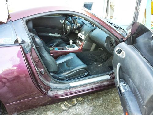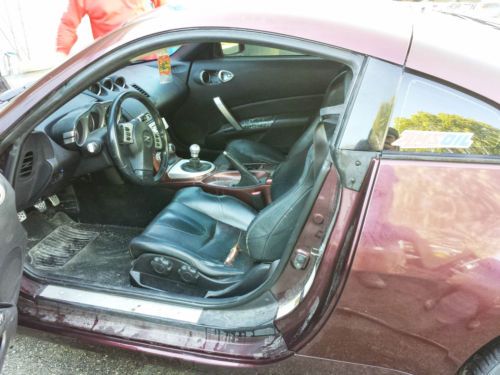 2006 Nissan 350Z Enthusiast. One owner. Premium Alloy wheels, Dual Heated Power Leather seats, Factory HID Headlights, LED Tail lights, Rear spoiler, BOSE PREMIUM SOUND Package, Cruise Control, Vehicle Dynamic Control (TRACTION CONTROL), Automatic windows (up and down), Clifford G5 alarm with intelestart (remote start) sound sensor and proximity sensors. Lightwieght Flywheel. I am the original owner and it's time to get a family car. Flaws: Needs some minor body work and some paint work. Front bumper has a crack in it. Clear coat is coming off roof. Was involved in an accident on passenger side, all accident damage was fixed. Passenger door has some dings. Currently needs a clutch as it is slipping and not working. Interior shows heavy signs of wear drivers seat needs to be re-upholstered, plastic by window switches need paint as well as the door lock over the radio. Motor runs strong, timing belt may need adjustment ( car has over 100,000 miles...). The exhuast has a spacer to give it a deeper sound but is easily reverted back to stock. Catalytic converters are still there. Cold air intake installed I will provide the factory air box as well. Spare tire is gone. The glove box door needs to be replaced. The two cubby hole doors need to be replaced as well. ALL PHOTOS ARE THE CARS CURRENT CONDITION.