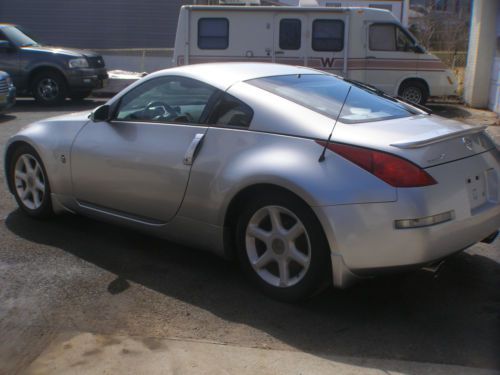 UP FOR SALE IS 2003 350Z V-6 6 SPEED WITH LEATHER POWER HEATED SEATS BOSE STEREO POWER WINDOWS, MIRROWS, TILT ,CRUSE AUTO CLIMATE CONTROL THE BODY HAS TWO SMALL DINGS IN PASS DOOR THE WHEELS HAVE SOME SCRAPES AND SCRATHES. THE CAR HAS NO ISSUES NO DASH LIGHTS NO OIL LEAKS GOOD CLUTCH TIRES