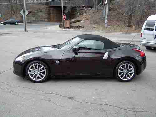 Take a look at this beautiful 2010 Nissan 370Z Touring convertible finished in Black Cherry with a Black top and matching Black Leather interior. With only 7K miles, this vehicle is a one owner, clean Car Fax no stories beauty. It comes with an Automatic transmission, all the owners manuals, a really nice car cover and both master keys. This car has always been stored indoors under the car cover when not in use. Summer is almost here and it's time to enjoy the good weather with your new 370Z Convertible. YOU DESERVE IT !!!!!