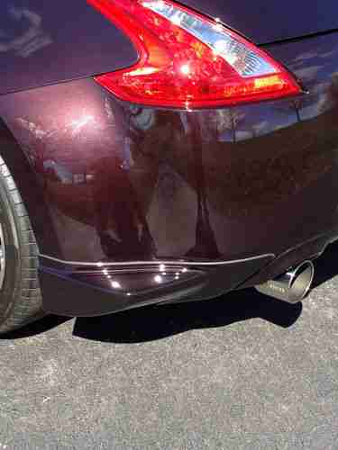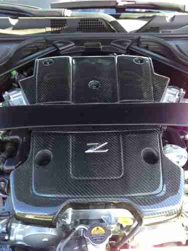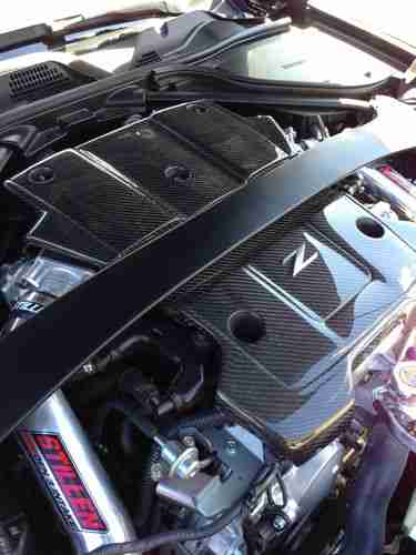 This ride can only be truly appreciated by a true Z freek. Lets start with the engine: Stillen stainless headers, Stillen Gen III cold air intake, Carbon Fiber engine cover w/ Z logo, Nissmo oil cap, and Nissmo stainless cat back exhaust system. All of the engine options are in the attached pictures except the headers. Moving on to the exterior: Nissmo front spoiler with chin trim and carbon fiber front upper trim, Nissmo side rails, Nissmo rear spoiler all OEM color match at factory. Nissan OEM front and rear black pearl Nissan emblems. Now the interior: Carbon fiber gauge covers, Carbon fiber steering pod cover, Nissan OEM GTR push button ignition switch, Carbon fiber power window and door lock trim, Carbon fiber radio and climate control trim, Pioneer AVIC-Z140BH/XNUC stereo system w/GPS, Iphone and Ipod interface (cable in center console) also with steering wheel control, bluetooth, back up camera and DVD ability. Also include is a Nissan OEM nylon outer w/ cotton lined car cover w/ Z logo over hood area.