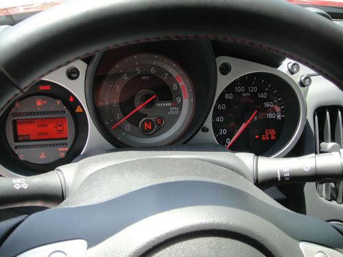 This is a Nissan 370z Nismo 6 Speed Manual Transmission with 559 Miles on it. It was purchased new from us then traded back in 3 weeks later on a new GT-R. It is in like new condition. No dings scratches or dents. The front bumper has be re-painted due to a scratch from a parking lot accident while it was owned. Interior is in like new condition with no smells or stains anywhere. The owner even bought a nice set os custom rubber mats that will go with it along with the carpet mats.