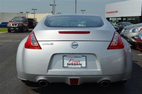 Featuring a sleek and sporty exterior, the Nissan 370Z comes available as a coupe or a roadster and is equipped with 18 aluminum-alloy wheels. The taillights on the 370Z have 10 LED lights stacked in a pyramid shape to enhance visibility and you can make a visual statement with powerful LED Daytime Running Lights. The interior features a Leather-wrapped steering wheel and an 8-way adjustable driver's seat. The Nissan Intelligent Key lets you tap a button on the door handle to unlock your Z, while your keys stay in your pocket. Once inside the vehicle, the Push Button Ignition allows you to start the 370Z with ease. Hear the sound of 332 pure horsepower through a tuned exhaust in your new Nissan 370Z. Powered by the 4th-generation VQ V6 engine capable 7500-rpm, the 370Z also offers the choice of either a 6 speed close-ratio manual transmission, or a 7-speed automatic transmission with Downshift Rev Matching. A low center of gravity and a wide stance give it ultra-responsive handling and enhanced cornering. The relatively short wheelbase and overall length of the 370Z make for incredible maneuverability, while 12.6 front and rear rotors and calipers ensure maximum stopping power Settle in, turn up the volume and enjoy the ride. The standard AM/FM/CD audio system pumps through four speakers and features an auxiliary input to hook up your iPod. Automatic Temperature Control will maintain the climate by automatically adjusting fan speed and climate control Keeping you safe while looking great, the 370Z has a broad range of safety features. Active Head Restraints help reduce the chance of whiplash injuries and the Tire Pressure Monitoring System ensures maximum tire life by keeping you informed. The Nissan Advanced Air Bag System features dynamic air bag inflation depending on crash severity and seat belt usage. Customization is limitless as the 370Z boasts a gamut of accessories that range from heightening aesthetics to boosting performance. ****KINGS NISSAN INTERNET SPECIAL'S**** CALL TOLL FREE 888-454-8431 TO RECEIVE ADDITIONAL SAVINGS PLUS LIFETIME FREE CAR WASHES. FOR MORE INFORMATION ON THESE SPECIALS AND MANY OTHERS CALL TODAY AND ASK FOR SALES OR EMAIL US AT internetsales@kingsnissancincinnati.com