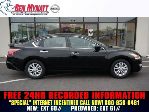 2.5 S trim, Super Black exterior and Beige interior. CD Player, [R09] SPORT VALUE PACKAGE, [H01] DISPLAY AUDIO PACKAGE, [L92] FLOOR MATS W/O TRUNK MAT (4 PIE..., Bluetooth, Overhead Airbag, Brand New. EPA 38 MPG Hwy/27 MPG City! CLICK NOW!======KEY FEATURES INCLUDE: Bluetooth, CD Player Keyless Entry, Remote Trunk Release, Steering Wheel Controls, Child Safety Locks, Electronic Stability Control. ======OPTION PACKAGES: SPORT VALUE PACKAGE: Trunk Mounted Spoiler, Remote Engine Start, Wheels: 16 Aluminum Alloy, DISPLAY AUDIO PACKAGE: 5 color audio display, rearview monitor, USB port w/iPod connectivity, hands-free text messaging assistant, XM satellite radio, NissanConnect Smartphone Apps and diversity antenna, FLOOR MATS W/O TRUNK MAT (4 PIECE): Carpeted. 2.5 S with Super Black exterior and Beige interior features a 4 Cylinder Engine with 182 HP at 6000 RPM*. Brand New. ======EXPERTS ARE SAYING: Edmunds.com explains The Altima feels more focused and responsive than many rivals do, yet it doesn't beat you up over bumps.. Great Gas Mileage: 38 MPG Hwy. ======WHO WE ARE: Visit us Today! Dealer Award Winner for outstanding sales and service in the Charlotte region. We are one of North Carolina's Largest Certified Nissan Dealers. Our team is professional, offers you a no-pressure environment and operates with the quality you expect. Price includes all applicable rebates in lieu of special NMAC finance rates and may be based on purchaser's zip code at the time of purchase. Prices do not include taxes, tag, and $589 administrative fee. Horsepower calculations based on trim engine configuration. Fuel economy calculations based on original manufacturer data for trim engine configuration. Please confirm the accuracy of the included equipment by calling us prior to purchase.