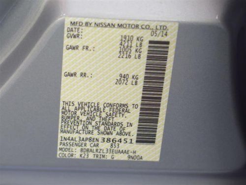 VIN (Vehicle Identification Number): 1N4AL3AP8EN386451