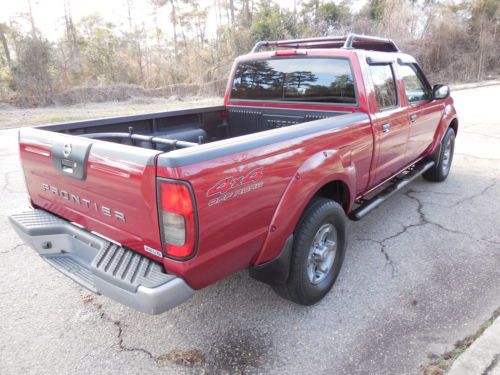 FOR SALE IS A ONE OWNER AZTEC RED ON GRAY NISSAN FRONTIER CREW 3.3L 4X4 5 SPEED MANUAL TRANSMISSION WITH 139K MILES. IT COMES EQUIPPED WITH ALL OPTIONS AND OPTIONAL BEDLINER AND ROOFRACKS. IT HAS A CLEAN HISTORY REPORT (SEE ATTACHED) AND IS MECHANICALLY SOUND. THE TIRES ARE IN GREAT SHAPE AND THE VEHICLE IS IN VERY GOOD MECHANICAL CONDITION. THE PAINT SHINES LIKE NEW AND THE INTERIOR HAS LITTLE SIGNS OF WEAR. THE VEHICLE HAD A RECENT SERVICE WITH A FRESH OIL CHANGE AND 100 POINT INSPECTION. YOU WONT FIND A NICER 2004 FRONTIER OUT THERE!! PLEASE CALL 706-737-1148 WITH ANY QUESTIONS. WE OFFER GREAT WARRANTY PROGRAMS AND MANY FINANCING OPTIONS. WE WILL ASSIST THE BUYER WITH SHIPPING DIRECTLY TO YOUR RESIDENCE OR BUSINESS MAKING THIS A HASSLE FREE BUYING EXPERIENCE.