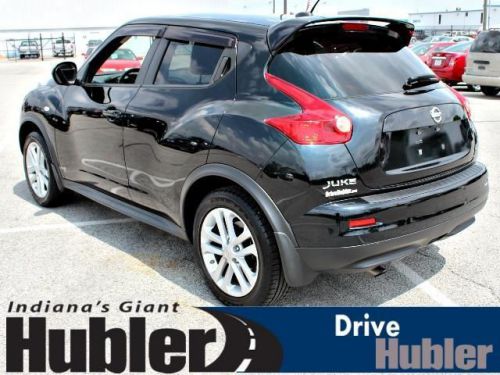 LOW MILES - 38,252! FUEL EFFICIENT 30 MPG Hwy/25 MPG City! Moonroof, Navigation, Heated Leather Seats, Back-Up Camera, Premium Sound System, Satellite Radio, Turbo Charged, Aluminum Wheels, All Wheel Drive, Head Airbag SEE MORE!======KEY FEATURES INCLUDE: Leather Seats, Navigation, Heated Driver Seat, Back-Up Camera, Turbocharged, Premium Sound System, Satellite Radio, iPod/MP3 Input, Bluetooth, Keyless Start, Heated Seats, Heated Leather Seats MP3 Player, Sunroof, All Wheel Drive, Aluminum Wheels, Privacy Glass. ======EXPERTS CONCLUDE: A drive in the 2011 Nissan Juke will have you seeing the inner beauty of this feisty little hatchback. -Edmunds.com. Great Gas Mileage: 30 MPG Hwy. ======BUY FROM AN AWARD WINNING DEALER: After more than 50 years in business, The Hubler Auto Group, through the power of ten central Indiana locations, has literally sold hundreds of thousands of vehicles and is one of the oldest and most prolific auto dealers in the State employing 550 people. The Hubler Auto Group can claim the title for selling more G.M. vehicles in the State of Indiana than any other dealer or dealer group, and has earned the right to brag of having the largest and most loyal customer Pricing analysis performed on 6/12/2014. Fuel economy calculations based on original manufacturer data for trim engine configuration. Please confirm the accuracy of the included equipment by calling us prior to purchase. Hubler Nissan is committed to providing the finest automotive ownership experience through superior customer service. Let us make you a "Customer for life". We have 99% Guaranteed Credit Approval! For more details or to schedule an appointment, call us at 888-566-9218.