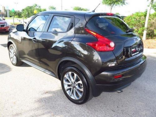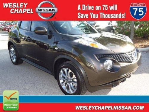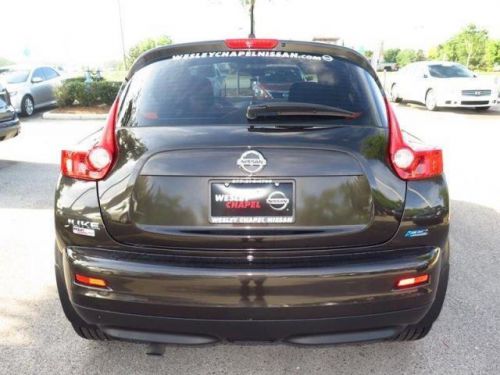 4D Sport Utility. Impeccable condition! Low Miles! Type your sentence here. If you demand the best things in life, this great 2013 Nissan Juke is the one-owner SUV for you. This Juke is nicely equipped with features such as 4D Sport Utility, 4-Wheel Disc Brakes, 6 Speakers, ABS brakes, Air Conditioning, AM/FM radio, AM/FM/CD/MP3 Audio System, Anti-whiplash front head restraints, Brake assist, Bumpers: body-color, CD player, Cloth Seat Trim, Driver door bin, Driver vanity mirror, Dual front impact airbags, Dual front side impact airbags, Electronic Stability Control, Front anti-roll bar, Front Bucket Seats, Front reading lights, Front wheel independent suspension, Illuminated entry, Just serviced and ready for many miles of trouble free driving, Leather Shift Knob, Lifetime Powertrain Warranty ! Look at this car..., Low tire pressure warning, MP3 decoder, Occupant sensing airbag, One Owner! Clean CarFax!, Outside temperature display, Overhead airbag, Panic alarm, Passenger door bin, Passenger vanity mirror, Power door mirrors, Power steering, Power windows, Radio data system, Rear anti-roll bar, Rear window defroster, Rear window wiper, Remote keyless entry, Security system, Speed control, Speed-sensing steering, Split folding rear seat, Steering wheel mounted audio controls, Tachometer, Tilt steering wheel, Traction control, Trip computer, Variably intermittent wipers, and Wholesale to the Public this week !! Sold AS IS NO Warranty. You can see the pride of ownership from the previous owner making Used not quite the right word for this vehicle...Previously Loved is much more accurate. Wesley Chapel Nissan offers a great selection of domestic cars, trucks, and sport utilities plus a huge selection of imports, including luxury highline models of the highest quality. Call our Internet Sales Team @ 877-422-4812 day or night! Print this page and present to a Internet Sales Team member and get a extra $250.00 off!