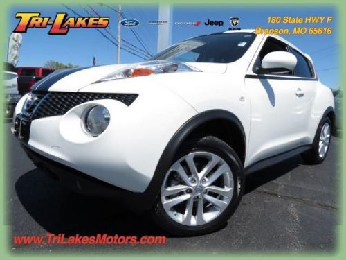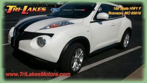 LEATHER...SUNROOF...RED STITCHING...TURBO....AWD...SUPER NICE WITH LOW MILES...Contact us about this beautiful vehicle. We would love to give you a quote on this vehicle including the specialized incentives you may be eligible for. This 2013 Nissan JUKE SL will make you a very happy camper, We also will throw in your first oil change for free and we have NO DOC fees. Find this beauty at Tri-Lakes Motors in Branson. Just a short drive from Springfield and Harrison. Our definition of short is around 30 mins. No FEES and a downright great place to do your business. WE will earn your business. Give us a call and we will do a one of a kind walk around on this vehicle. You can watch this video from the comfort of your home or the convenience of your phone. Call us at 866-413-5591 with any questions and to make sure this vehicle is still AVAILABLE. Tri-Lakes is a Franchise dealer for Ford, Chrysler, Dodge, Jeep, and Ram. This means we try to make sure our pre-owned vehicles in turn are in like new car shape and quality. Offer is not valid with any other offer. We take trade-ins and can finance almost anyone through our 14 lenders.