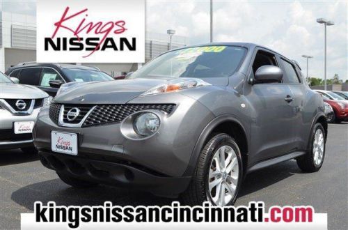 Look at this 2013 Nissan JUKE SV. This JUKE features the following options: Front/rear stabilizer bars, Privacy glass, Child safety rear door locks, Traction control system (TCS), Front Map Lights, Bluetooth hands-free phone system, Rear window defroster w/timer, Immobilizer system, Tire pressure monitoring system (TPMS), Vehicle security system. It has a Variable transmission and a Gas Turbocharged I4 1.6L/99 engine. Test drive this vehicle at Kings Nissan, 9819 Kings Automall Rd., Cincinnati, OH 45249.Contact us at 888-453-7491. **KINGS NISSAN INTERNET SPECIAL'S** CALL TOLL FREE 888-453-7491 TO RECEIVE ADDITIONAL SAVINGS, LIFETIME FREE CAR WASHES, AND NOW LOW APR RATES ON ALL CERTIFIED USED CARS. ASK FOR SALES***WHEN YOU ARRIVE FOR DETAILS. **CERTAIN RESTRICTIONS MAY APPLY SEE DEALER FOR DETAILS*