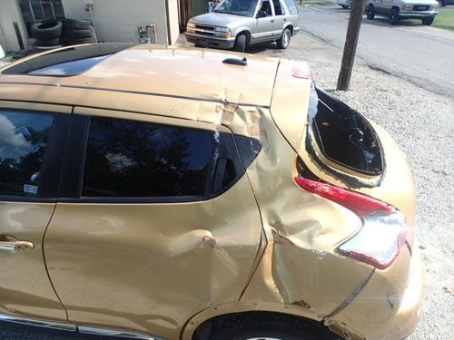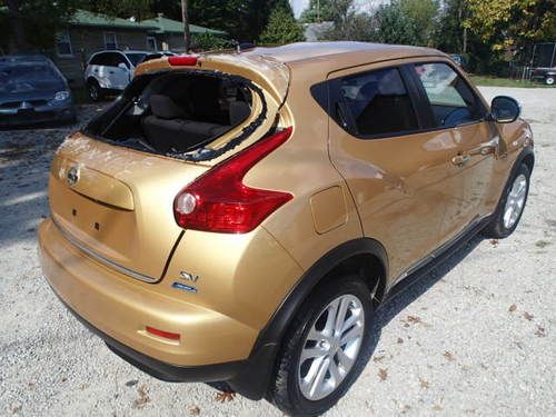 Hello you are bidding on a 2013 Nissan Juke SV that is brand new unit that sustained storm damage to the left rear of the vehicle. The vehicle still runs and drives great, you can drive the vehicle home. There are no check engine lights or warning lights that are on. Navigation, back up camera. Very nice vehicle.The vehicle will need the following, left quarter skin, left rear door shell, left rear taillight, back glass, left rear quarter fender flare, repair damage to the roof, and there is a dent in the top of the hatch that will need to be repaired.The left front door also has some damage on it but can be repaired no problem. The vehicle is being stored inside and the interior has not been rained in. You can look on car-part or on www ebay com. The left rear door could possibly be saved. The car is for sale locally and we do reserve the right to end the auction early. The vehicle is being sold as is damaged with salvage title. Please feel free to contact me at 502 817 2972 with any questions you have. The rear bumper cover is scratched and scuffed but can be repaired and repainted no problem. The rest of the car besides the damaged areas are in good condition.