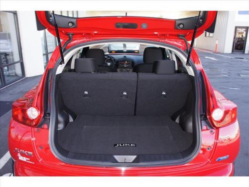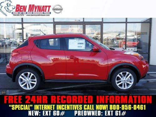 IPod/MP3 Input, Bluetooth, CD Player, [B92] SPLASH GUARDS, [N94] CENTER ARMREST, [L92] CARPETED FLOORMATS & CARGO MAT, RED ALERT. Red Alert exterior and Black interior, S trim. FUEL EFFICIENT 32 MPG Hwy/27 MPG City! CLICK NOW!======KEY FEATURES INCLUDE: iPod/MP3 Input, Bluetooth, CD Player, Aluminum Wheels MP3 Player, Keyless Entry, Steering Wheel Controls, Child Safety Locks, Electronic Stability Control. ======OPTION PACKAGES: CARPETED FLOORMATS & CARGO MAT, BLACK, CLOTH SEAT TRIM, RED ALERT, CENTER ARMREST, SPLASH GUARDS. S with Red Alert exterior and Black interior features a 4 Cylinder Engine with 188 HP at 5600 RPM*. ======EXPERTS CONCLUDE: If you need a compact crossover SUV that sips fuel, yet can still tackle the toughest winter weather with ease, consider the 2014 Nissan Juke. -KBB.com. Great Gas Mileage: 32 MPG Hwy. ======MORE ABOUT US: Visit us Today! Dealer Award Winner for outstanding sales and service in the Charlotte region. We are one of North Carolina's Largest Certified Nissan Dealers. Our team is professional, offers you a no-pressure environment and operates with the quality you expect. Price includes all applicable rebates in lieu of special NMAC finance rates and may be based on purchaser's zip code at the time of purchase. Prices do not include taxes, tag, and $589 administrative fee. Horsepower calculations based on trim engine configuration. Fuel economy calculations based on original manufacturer data for trim engine configuration. Please confirm the accuracy of the included equipment by calling us prior to purchase.