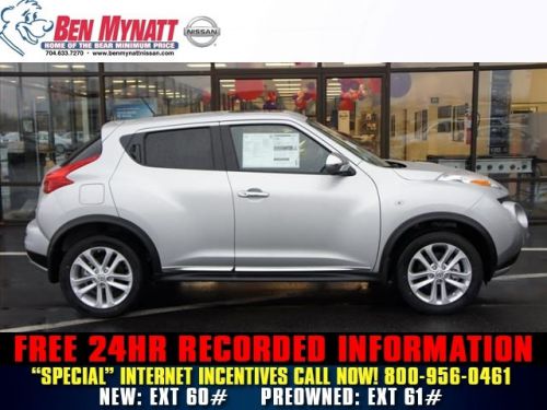 Heated Leather Seats, Nav System, Moonroof, Satellite Radio, iPod/MP3 Input, Bluetooth, [L93] CARPETED FLOORMATS & CARGO MAT.. Back-Up Camera. Brilliant Silver exterior and Black interior, SL trim. EPA 32 MPG Hwy/27 MPG City! CLICK ME!======KEY FEATURES INCLUDE: Heated Leather Seats, Navigation, Sunroof, Back-Up Camera, Premium Sound System, Satellite Radio, iPod/MP3 Input, Bluetooth, Aluminum Wheels MP3 Player, Keyless Entry, Privacy Glass, Child Safety Locks, Steering Wheel Controls. ======OPTION PACKAGES: CARPETED FLOORMATS & CARGO MAT (L93), SPLASH GUARDS, PREMIUM APPEARANCE PACKAGE: chrome lower rear hatch applique and front and rear styling plates, Chrome Side Mirror Covers, Chrome Body Side Moldings, Chrome Door Handle Appliques, CENTER ARMREST. SL with Brilliant Silver exterior and Black interior features a 4 Cylinder Engine with 188 HP at 5600 RPM*. ======VEHICLE REVIEWS: KBB.com's review says If you need a compact crossover SUV that sips fuel, yet can still tackle the toughest winter weather with ease, consider the 2014 Nissan Juke.. Great Gas Mileage: 32 MPG Hwy. ======OUR OFFERINGS: Visit us Today! Dealer Award Winner for outstanding sales and service in the Charlotte region. We are one of North Carolina's Largest Certified Nissan Dealers. Our team is professional, offers you a no-pressure environment and operates with the quality you expect. Price includes all applicable rebates in lieu of special NMAC finance rates and may be based on purchaser's zip code at the time of purchase. Prices do not include taxes, tag, and $589 administrative fee. Horsepower calculations based on trim engine configuration. Fuel economy calculations based on original manufacturer data for trim engine configuration. Please confirm the accuracy of the included equipment by calling us prior to purchase.